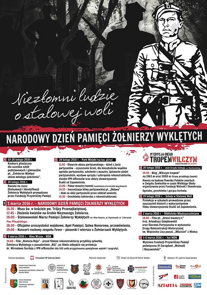 W tym roku w Stalowej Woli uroczystości związane z Narodowym Dniem Pamięci Żołnierzy Wyklętych, które przypadają na 1 marca rozpoczęły się już w niedzielę 28 lutego. Tego dnia od godz. 11.00 w Parku Miejskim im. kpt. Pilata, była prowadzona na rzecz ogólnopolskiej kwesty Fundacji Niezłomni, na ekshumację i identyfikację Żołnierzy niezłomnych. Ponadto mieszkańcy mogli zobaczyć jak wyglądał obóz partyzancki, a w nim m.in. czyszczenie broni, obsługa broni, pokaz musztry konnej wspólne ognisko z mieszkańcami przy, którym nie zabrakło partyzanckich pieśni. O godz. 14.30 miała miejsce inscenizacja bitwy partyzanckiej pt. Obława, na którą składał się atak żołnierzy sowieckich na obóz żołnierzy II konspiracji, w której brali udział również członkowie Fundacji Przywróćmy Pamięć.
