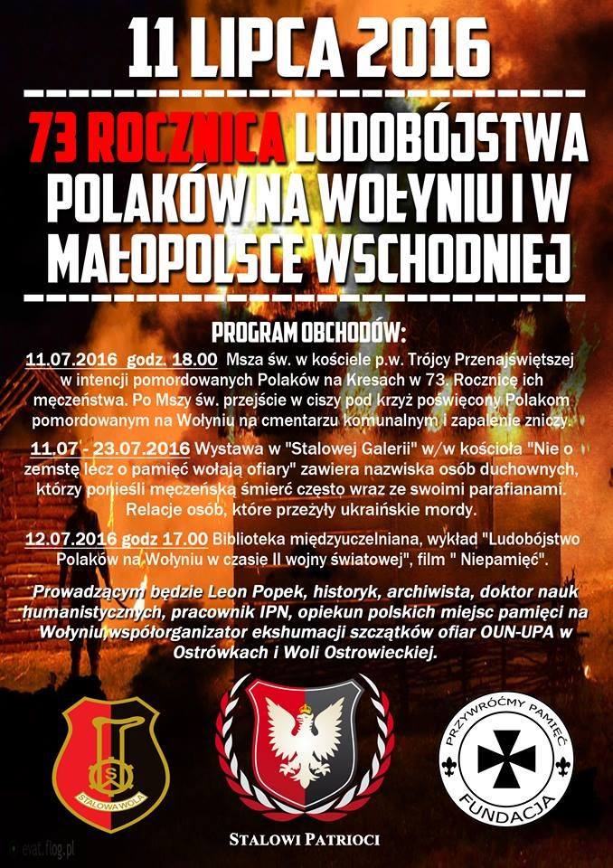 11 lipca 1943 roku minie 73. Rocznica Zbrodni Wołyńskiej. Tego dnia nastąpiła kulminacja masowej zbrodni dokonanej na obywatelach polskich przez nacjonalistów ukraińskich. Łączne straty ludności polskiej na całym obszarze zbrodniczej działalności OUN-UPA wynoszą co najmniej 120 tys. zamordowanych Polaków. Nie można jednak wykluczyć, iż liczba ta może być w rzeczywistości znacznie większa.