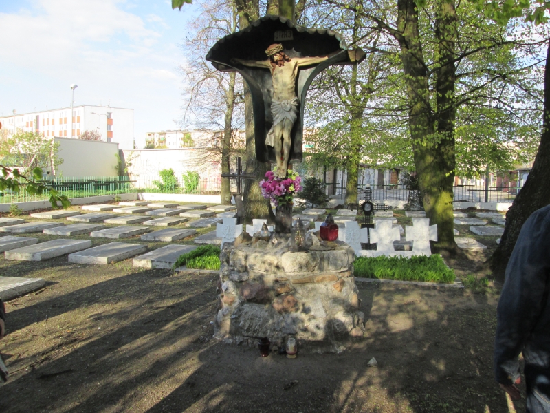 Tak wygląda obecnie cmentarz wojenny w Tarnobrzegu, był to trzeci co do wielkości cmentarz w okręgu (236 poległych). Jakkolwiek kontrowersyjny był pomysł położenia betonowych płyt na mogiłach, to stanu utrzymania cmentarza można jedynie pozazdrościć. Sprzed 1918 r. pochodzi krucyfiks z daszkiem umieszczony w centralnej części obiektu. W materiale krzyża zachowała się część oryginalnej substancji, ale skutkiem podgniwania od dołu wielokrotnie go skracano. Z tego względu podczas jednego z remontów podniesiono wysokość kamiennego postumentu, w każdym razie jego podstawa pochodzi z epoki. |