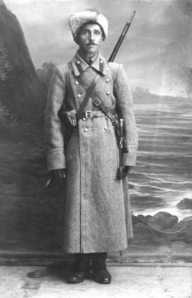 Wspólny los wielu Polaków w latach Wielkiej Wojny: warszawiak Władysław Jaroszewski z Warszawy, wcielony wiosną 1914 r. do syberyjskiego Primorskiego Pułku Dragonów – pułku, który na front przybył dopiero w początkach 1915 r. Tak wyglądało umundurowanie zimowe kawalerii rosyjskiej – z wyjątkiem czapek - papach, używanych początkowo wyłącznie przez jednostki syberyjskie i kozackie.