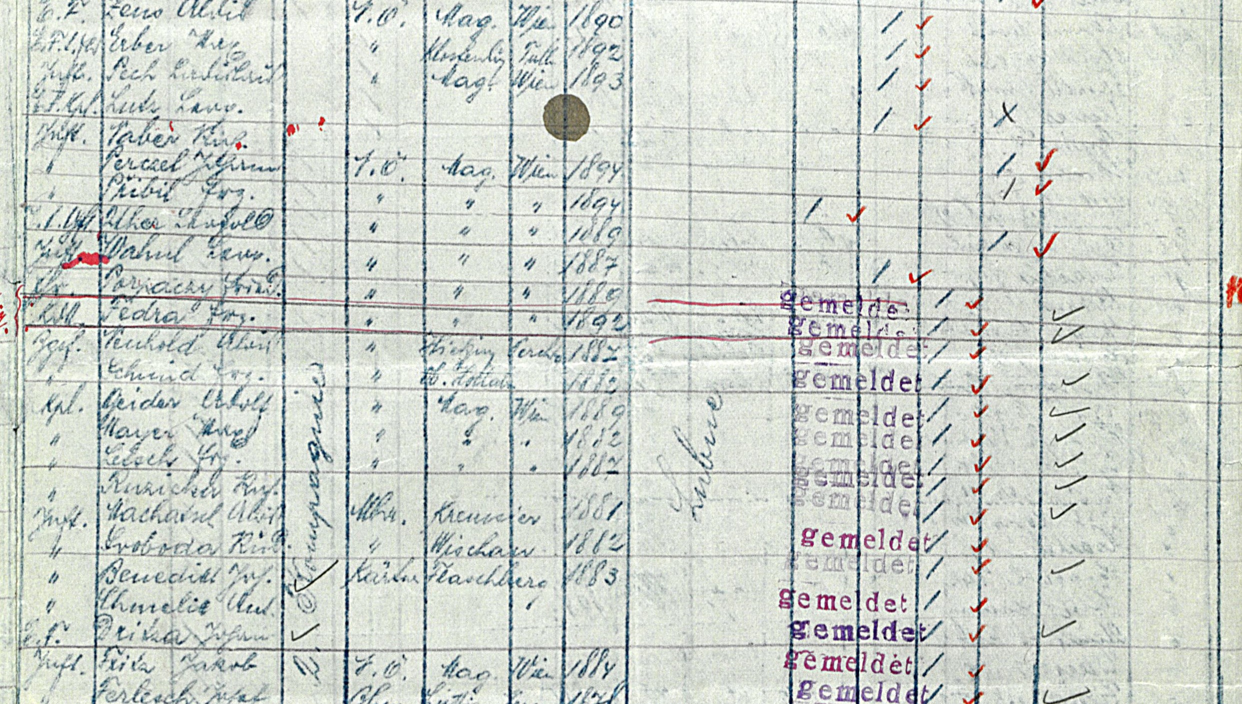 Fragment meldunku o stratach za marzec 1915 r. przesłanego przez kk LIR 1 do Ministerstwa Wojny. Oprócz Drizy (trzeci wiersz od dołu) z osób wspomnianych w dzienniku można znaleźć jednorocznego ochotnika Lutza Leopolda (czwarty wiersz od góry) wykazanego najpierw jako zaginiony a potem jako ranny.