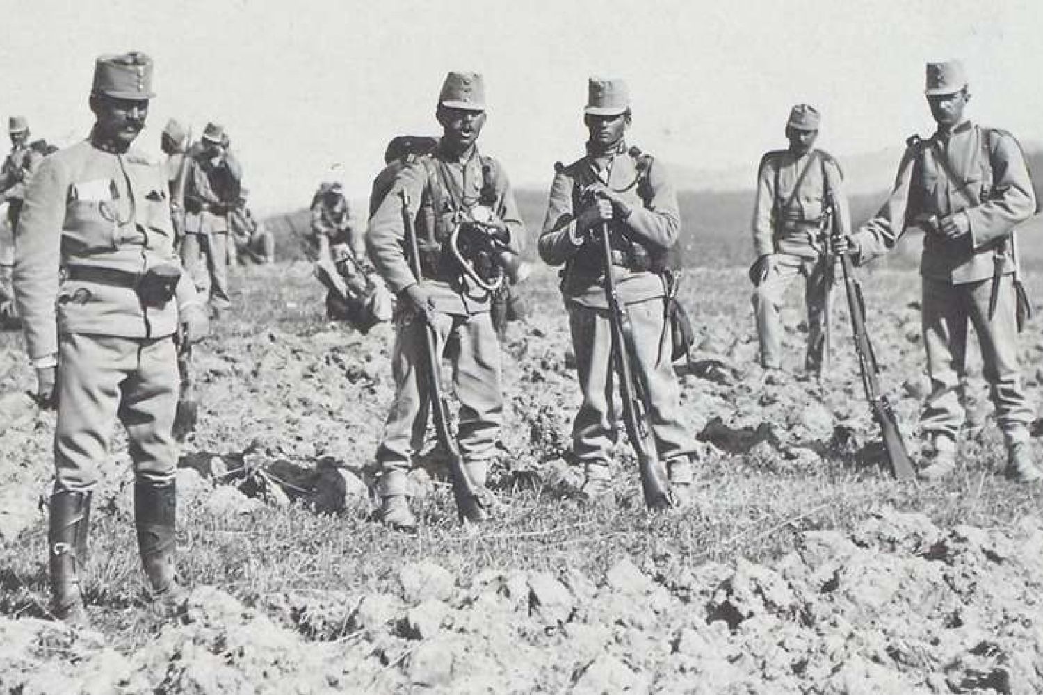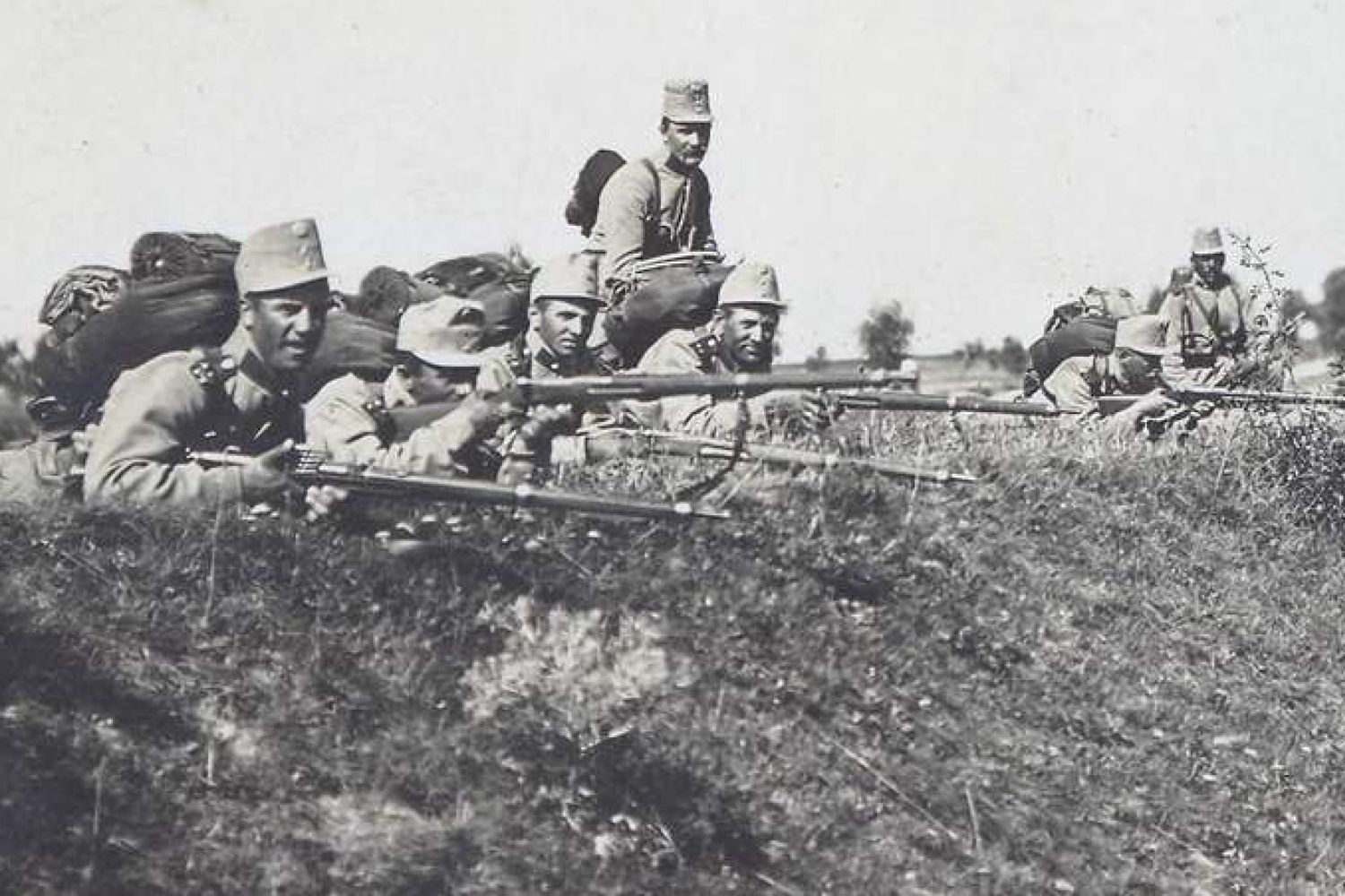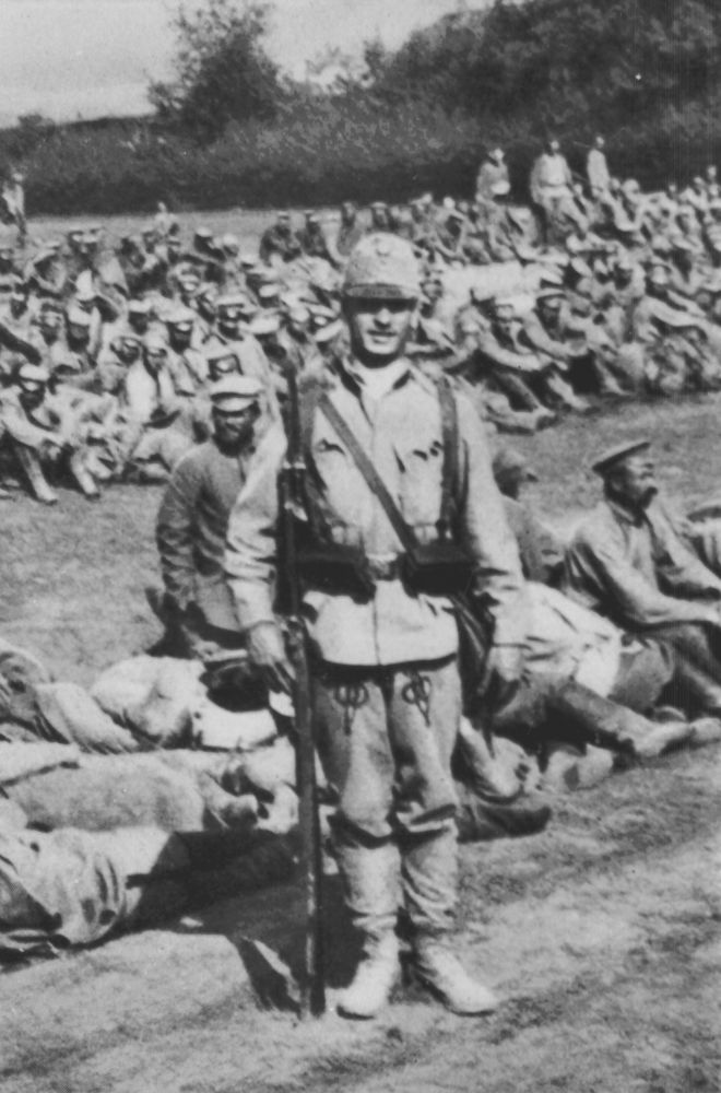 Dwa zdjęcia wykonane podczas manewrów cesarskich latem 1911 r. – żołnierze już w mundurach polowych nowego wzoru. W praktyce nie sprawdziły się one – kolor hechtgrau słabo maskował sylwetkę żołnierza, a wełniana tkanina z której je wykonywano była zbyt ciepła jak na warunki letnie. Jedno zdjęcie pokazuje tzw. sztab kompani: oficer w stopniu Hptm(kpt.) obok niego żołnierz z trąbką w stopniu Kompaniehornist(trębacz kompanijny) podający komendy dla całego pododdziału oraz 2 gońców. Kolejne zdjęcie pokazuje jeńców rosyjskich wziętych do niewoli pod Kraśnikiem, pilnowanych przez żołnierza tzw. węgierskiego pułku piechoty (charakterystyczne „parzenice" naszyte na nogawkach, notabene te były inspiracją dla stroju górali podhalańskich!)