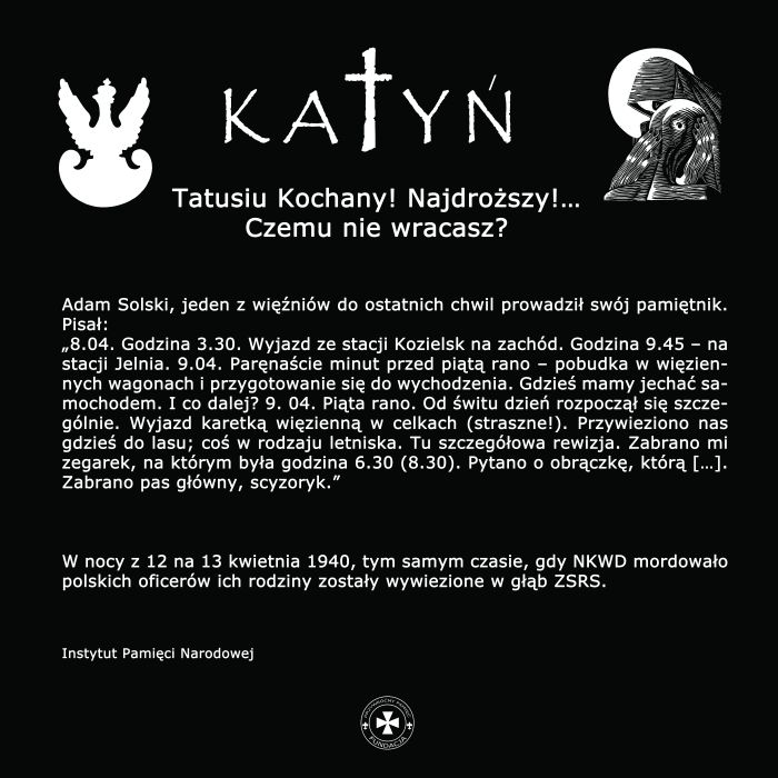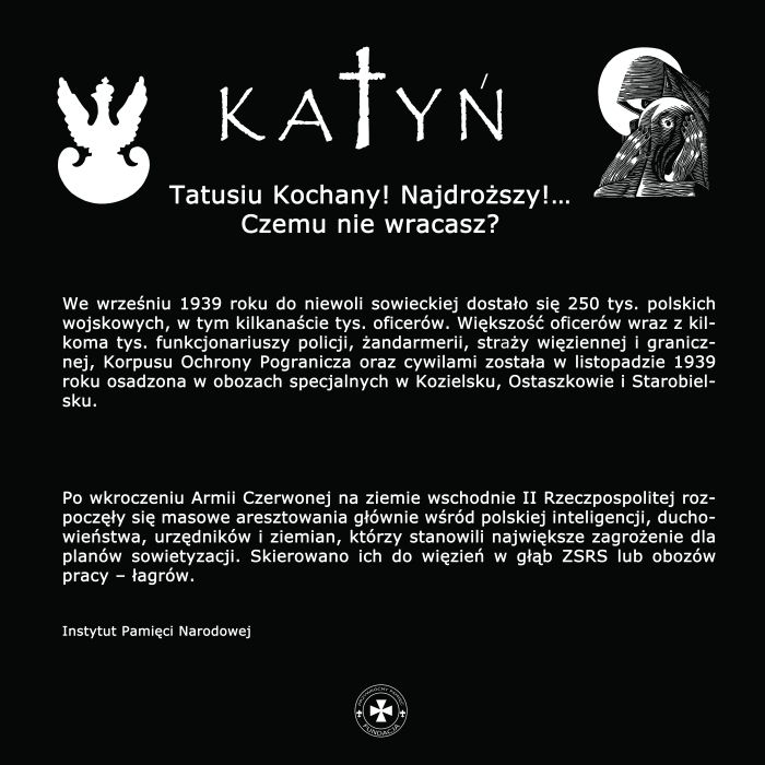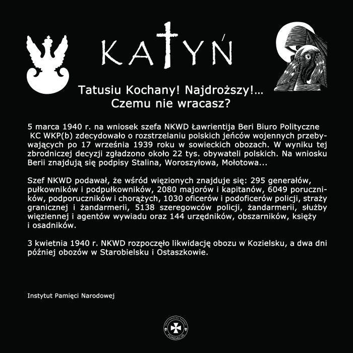 75 lat temu NKWD rozpoczęło likwidację obozów dla polskich oficerów w Kozielsku, Starobielsku i Ostaszkowie. Na mocy decyzji władz ZSRS wymordowano też obywateli polskich uwięzionych na zajętych przez Sowietów terenach RP. W wyniku Zbrodni Katyńskiej śmierć poniosło ok. 22 tys. osób.