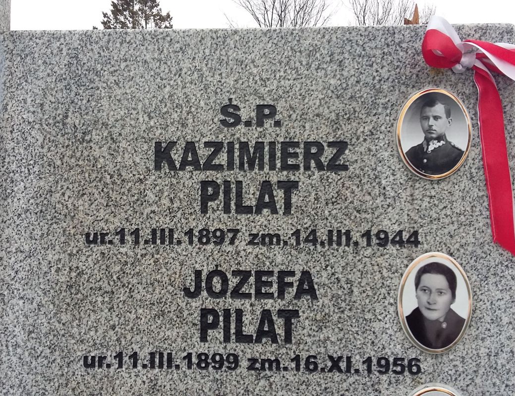 W lutym 1930 roku, w kościele parafialnym w Zakopanym zawarł związek małżeński z Józefą Kopyto. W 1941 roku przychodzi na świat jedyny syn Wojciech, który wraz z mamą po aresztowaniu Kazimierza Pilata w 1944 roku ukrywa się w Zakopanym. Żona Józefa zmarła w 1956, a syn Wojciech w 2010 r. Oboje są pochowani na cmentarzu w Zakopanym. Tam również symboliczną tabliczkę na rodzinnym grobowcu ma kpt. Kazimierz Pilat. Obecnie w Zakopanym mieszka wnuczka Kazimierza – Pani Krystyna.
