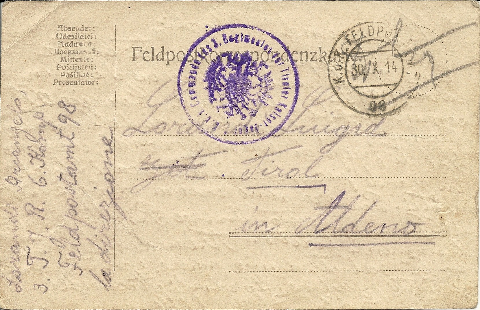 To kolejny żołnierz z Tyrolu Południowego, poległy rankiem 1 listopada 1914 r. podczas walk o Rozwadów. Dzięki Flavio Brighentiemu wiemy o nim więcej, możemy również zobaczyć jak wyglądał. Dziękujemy za cenne materiały wszystkim którzy wspierają tworzenie naszego wirtualnego cmentarza wojennego w Rozwadowie - Stalowej Woli. W przyszłości pozwoli to przywrócić do godnego stanu samą nekropolię.