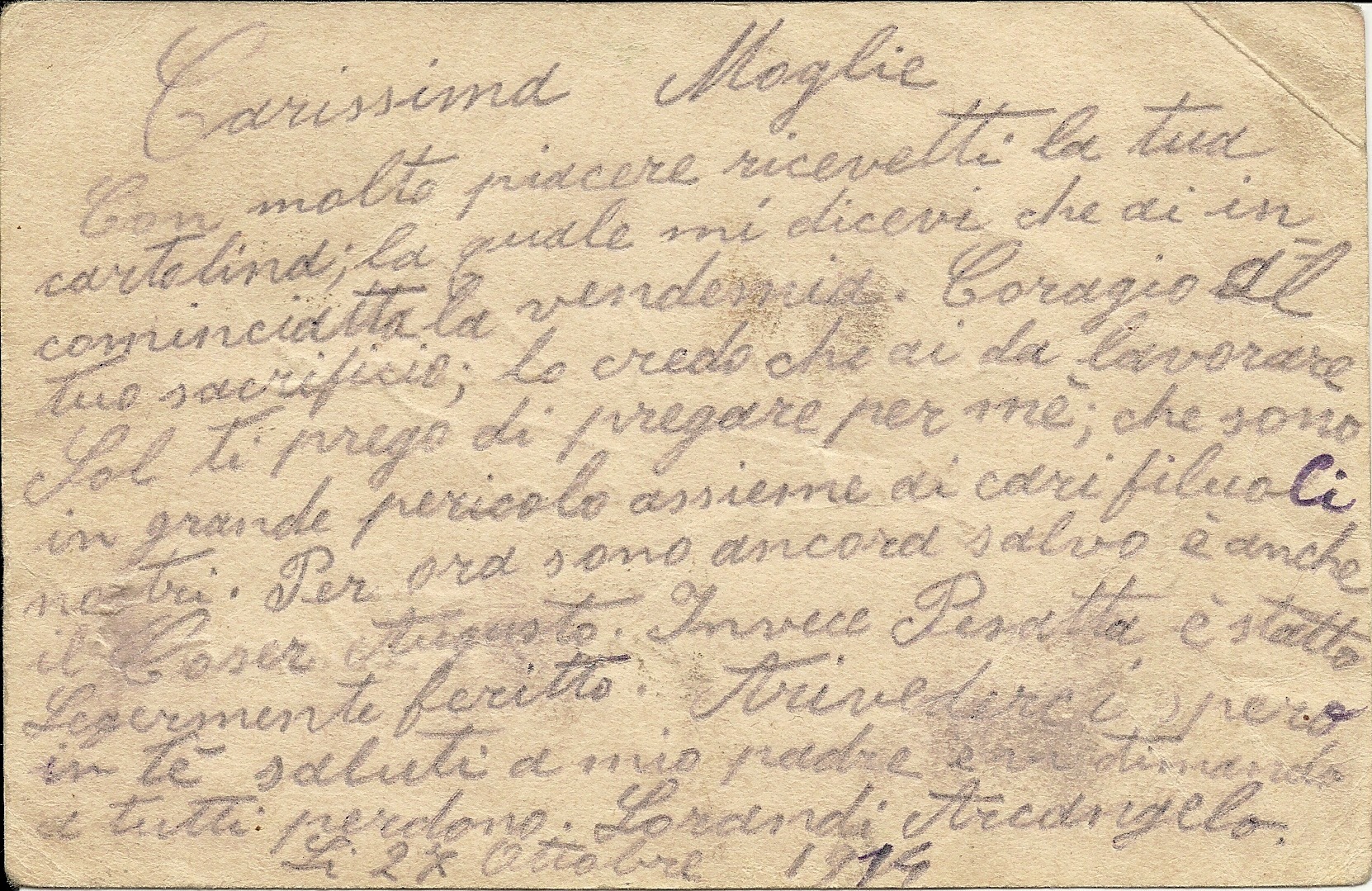 Urodzony w 1879 r w Aldeno w okręgu Roveretto wyuczył się zawodu młynarza, jak wynika z ewidencji wojskowej. Kiedy stanął do poboru, przeznaczono go do Rezerwy Zapasowej 3 pułku cesarskich strzelców tyrolskich. Przeszkolenie rekruckie odbył w okresie 1 październik - 27 listopad 1900 r., potem wzywano go na ćwiczenia w maju 1903 r., oraz w lipcu sierpniu 1905 i 1907 roku. Następnie ewidencja wojskowa zawiera jedynie wpisy o zmieniających się przydziałach. Kolejna ważna informacja dotyczy powołania go do służby 3 sierpnia 1914 r i wcielenia do jednostki zapasowej macierzystego pułku. Wskazuje to, że na front mógł dotrzeć najwcześniej z II, a najpewniej z III marszbaonem. Niewiele jest informacji na temat jego rodziny: był żonaty, na pewno żył jeszcze jego ojciec i teść, rodzina zajmowała się winnicą. Ostatnią informacją dla rodziny była karta pocztowa do żony datowana 27 października a wysłana 30 października przez polowy urząd pocztowy nr 98. Z jej treści wynika że był pełen złych przeczuć, prosił najbliższych o modlitwę i przebaczenie, tak jakby żegnał się ze światem.