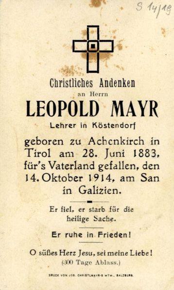 Drukuj Powrót do poprzedniej strony Mayr Leopold Treść Mayr Leopold, ER.Jg, TKJ 4,*1883, Tyrol, +28.10.1914, gr. (?)